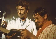 Haben wir nicht alles gemacht, wie es im Buche stand? Der falsche Lehrer, Dr. Roland (Peter Alexander, l.), lässt es im Chemiesaal krachen. (Darsteller daneben nicht bekannt.)Bild: © ZDF und Terra Filmkunst GmbH