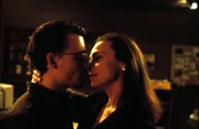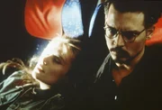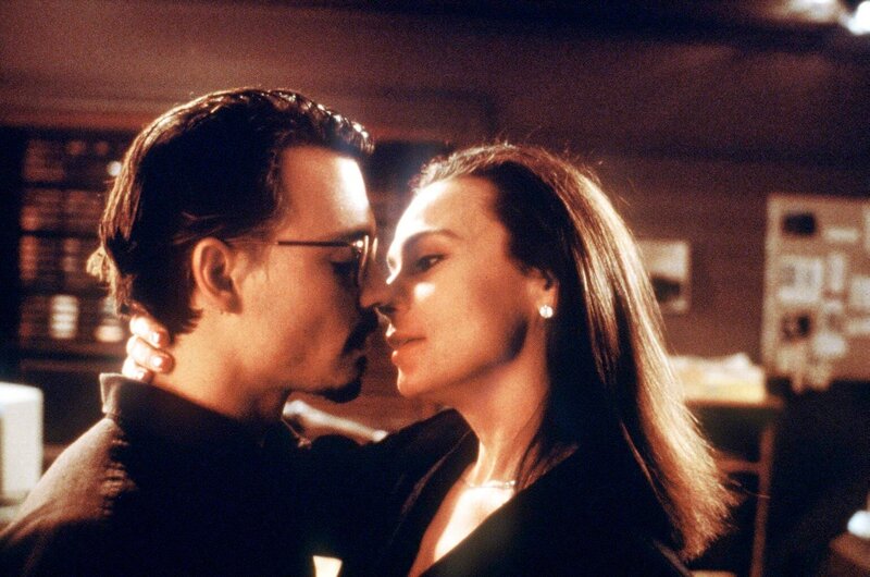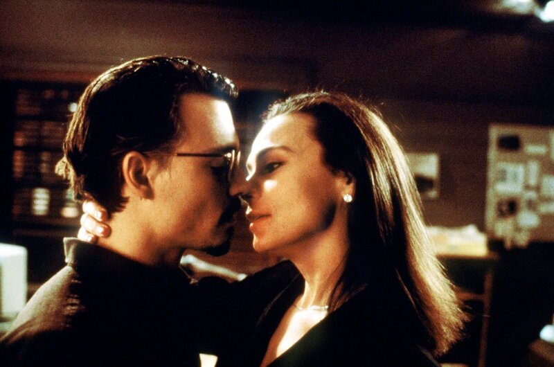 Der Bücherjäger Dean Corso (Johnny Depp, l.) ist auf der Suche nach dem Original eines satanistischen Handbuchs. Doch auch die attraktive Liana (Lena Olin, r.) scheint daran nicht ganz uninteressiert zu sein ...