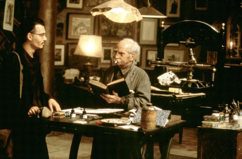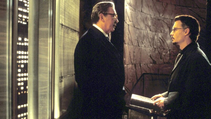 Auch der Buch-Liebhaber Boris Balkan (Frank Langella, vorne) ist dem satanistischen Werk "The Ninth Gate" verfallen und beauftragt deshalb den Buchjäger Dean Corso (Johnny Depp, hinten) mit einem besonders schwierigen Fall.