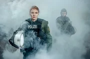 Nach dem Einsatz gegen gewaltbereite Ultras ist Rebecca (Magdalena Laubisch) nicht nur erschöpft, sondern auch enttäuscht über sich selbst, weil sie die Kontrolle verloren hatte.Bild: © SWR/Leonin Studios