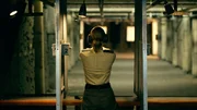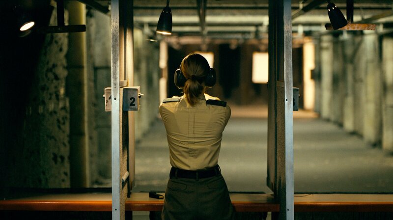 Die ehrgeizige junge Polizistin Rebecca (Magdalena Laubisch) beim Schießtraining.Bild: © SWR/Leonin Studios
