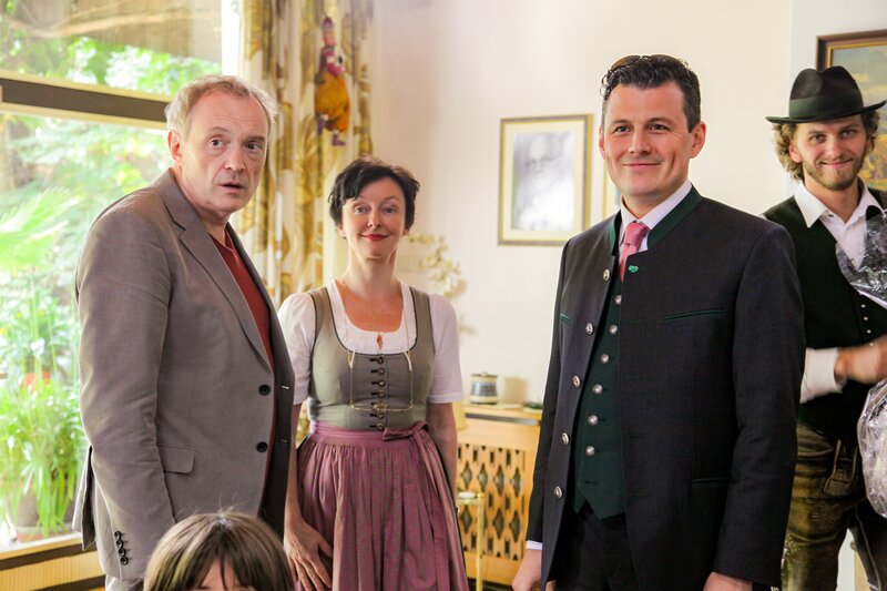 Hubert (Josef Hader, l.), Traude (Regina Fritsch), Bezirksvorsteher (Manuel Rubey, 2.v.r.).Bild: © ORF