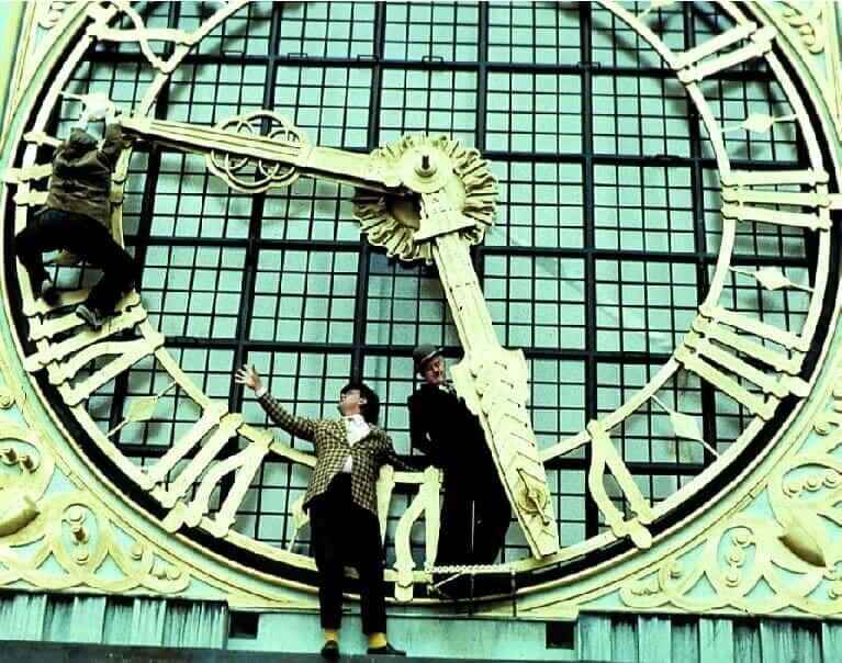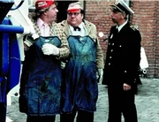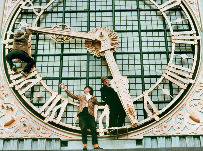Die Olsenbande holt zu ihrem 10. Schlag aus. Dazu treibt es Egon Olsen (Ove Sprogöe), Benny (Morten Grunwald) und Kjeld (Poul Bundgaard, v.l.n.r.) sogar bis hoch hinauf zur Turmuhr des Kopenhagener Rathauses.