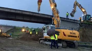 Aufgrund des enormen Zeitdrucks wird an der Baustelle auch bis in die späten Abendstunden noch gearbeitet.Bild: © WeltN24 GmbH