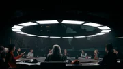 Der Weltuntergang naht, es ist zwei Minuten vor Mitternacht. Im Kabinett eines fiktiven Landes sucht eine ausschließlich aus Frauen bestehende Regierung gemeinsam mit unterschiedlichen Expertinnen nach Lösungen, um den Klimawandel und einen globalen Atomkrieg zu verhindern. Was wäre, wenn Frauen die Welt regieren würden? Diese Frage stellt Yael Bartana in ihrem Film "Two Minutes to Midnight". - Beratungen im Friedensraum.Bild: © rbb/Yael Bartana