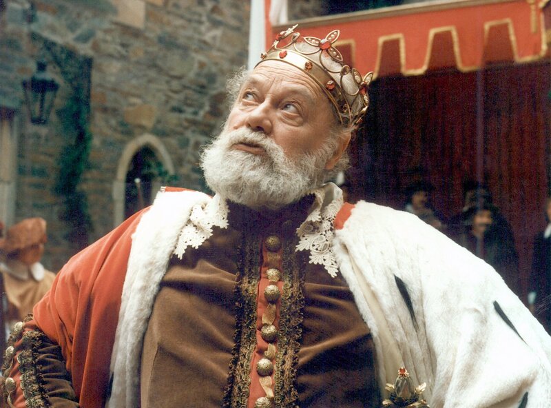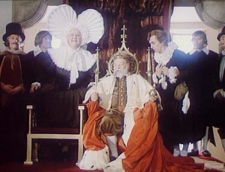 Der vertrottelte König und Prinzessinenvater (Lubor Tokos) mit seinen Vasallen. Er ist im Konflikt mit den großen Mächten.Bild: © BR