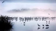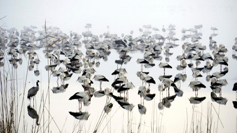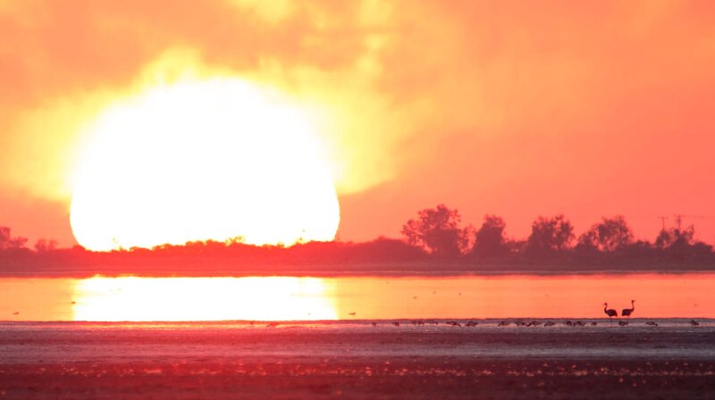 MDR FERNSEHEN FASZINATION VÖGEL: DIE REISE DER KRANICHE - FLUG OHNE GRENZEN, Film von Maxence Lamoureux und Arnaud Devroute, am Sonntag (10.10.21) um 14:45 Uhr und schon ab 03.10.2021, 14:45 Uhr in der Mediathek. Kraniche auf der Reise / Ukraine © MDR/Ushuaïa TV/Bonobo Productions, honorarfrei - Verwendung gemäß der AGB im engen inhaltlichen, redaktionellen Zusammenhang mit genannter MDR-Sendung bei Nennung "Bild: MDR/Ushuaïa TV/Bonobo Productions" (S2+). MDR/HA Kommunikation, 04360 Leipzig, Tel: (0341) 300 6477 oder - 6463