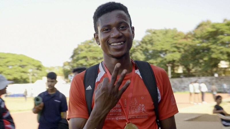 Akshey Siddi läuft 100 Meter in 11,02 Sekunden und qualifiziert sich damit für die Karnataka Jugendmeisterschaften.Bild: © SWR / Lars Barthel