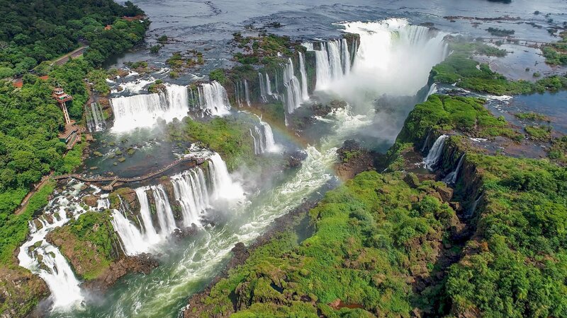 Die Wasserfälle von Iguazú sind das Zuhause der seltenen Rußsegler, die hinter den tosenden Wassermassen nisten.Bild: © ZDF und © gettyimages.