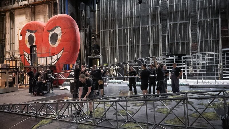 Bühnenarbeit am Bühnenbild der „Verkauften Braut“.Bild: © ORF