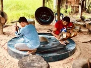 Im Isan, im Nordosten Thailands, führt die "Straße der Gongs" direkt an die Grenze zu Laos und zum mächtigen Strom des Mekong. Im Dorf Kong Chiam steht mit einem Durchmesser von ganzen 20 Metern der größte Gong der Welt. Aber wie werden aus einem Stück Stahlblech, Messing oder Kupfer solche Kunstwerke? Ende Oktober, zum Ende der Regenzeit, werden besonders viele Gongs in den dortigen Werkstätten bestellt, um sie zu spenden. Mit Spenden an die Mönche und Tempel hoffen viele Thais, ihr Schicksal positiv zu beeinflussen. Nirand, der ehemalige Bürgermeister, möchte dem Tempel seines Dorfes einen ganz besonderen Gong spenden. Um den kurzfristigen Auftrag soll sich Lek kümmern, der bald Werkstatt und Shop seines Vaters Tongchan übernehmen soll. Lek hat sich bisher vor allem um die Vermarktung der Gongs gekümmert, Nirands Gong soll nun sein Meisterstück werden. Denn als künftiger Chef muss er sich mit allen Bearbeitungsschritten der Gongs auskennen. Zumal in der Werkstatt nicht nur Gongs, sondern auch traditionelle Holztrommeln aus riesigen Tropenbäumen hergestellt werden. Ohne die Unterstützung erfahrener Arbeiter, die mit sicheren Hammerschlägen echte Meisterwerke erschaffen, ist so ein Auftrag in nur wenigen Tagen nicht zu stemmen. Denn ist der Gong ausgehämmert, geht es im nächsten Schritt an die Bemalung. Der Gong des ehemaligen Bürgermeisters soll ein besonderes Dekor bekommen. Keine leichte Aufgabe für Malerin Kiew und ihre Tochter. Sie müssen sich neue Motive ausdenken. Schaffen es Lek und seine Mitarbeiterinnen und Mitarbeiter, den Gong rechtzeitig zum Feiertag fertigzustellen?...