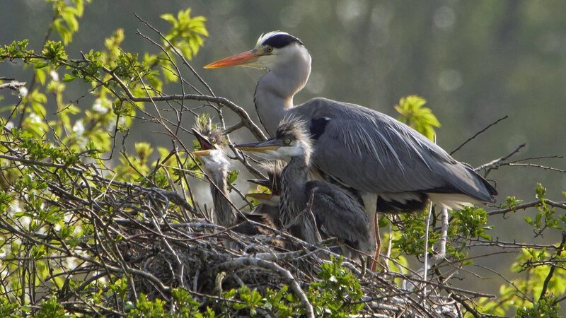 Graureiher und deren Nachwuchs.Bild: © RTL / (c) Tesche Dokumentarfilm