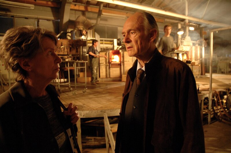 Matthias Auerbach (Heino Ferch, r.) weigert sich, auf den Rat seines Kollegen Grohnert (Michael Lott, l.) zu hören, der ihm dringend abrät, sich weiter in die örtlichen Ermittlungen einzumischen.