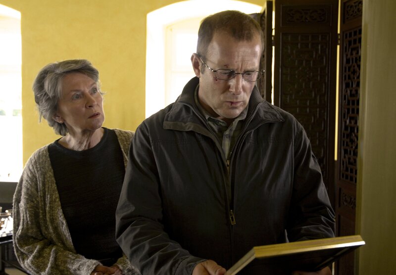 Merkwürdigerweise ist dem Ortspolizisten Weber (Dirk Borchardt, l.) sehr daran gelegen, dass das Bild von Auerbachs (Heino Ferch, r.) Frau nicht veröffentlicht wird.