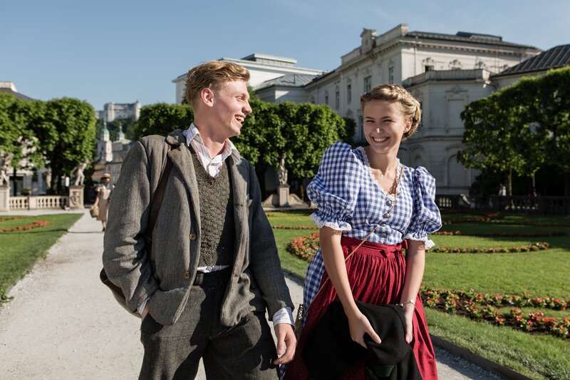 L-R: Sigi (Johannes Nussbaum), Agathe von Trapp, jung (Eliza Hope Bennett).Bild: © ORF