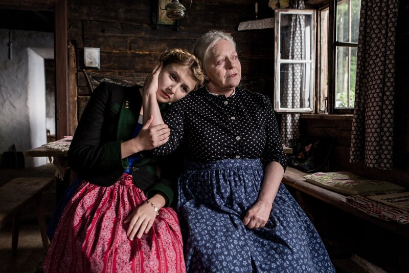 L-R: Agathe von Trapp, jung (Eliza Hope Bennett), Frau Mayer (Brigitte Kren).Bild: © ORF