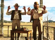Travis (Terence Hill, l.) sieht zu, wie sein Bruder Moses (Bud Spencer, r.) auf seine Recht besteht ...Bild: © TOBIS FILMKUNST