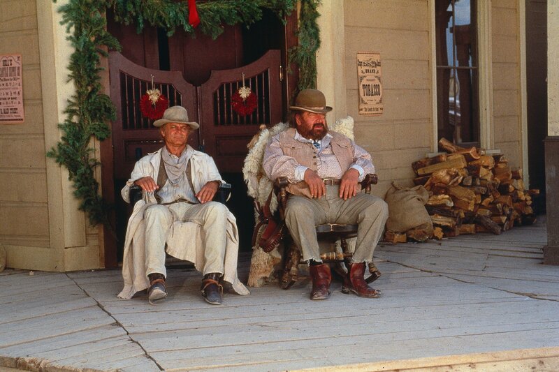 Travis (Terence Hill, r.) und Moses (Bud Spencer, l.) sind zwei äußerst ungleiche Brüder: Travis ist ein Spieler und Lebenskünstler, Moses Kopfgeldjäger und Familienvater. Erst der Wunsch ihrer Mutter nach einem gemeinsamen Weihnachtsfest führt die beiden wieder zusammen...Bild: © TOBIS FILMKUNST