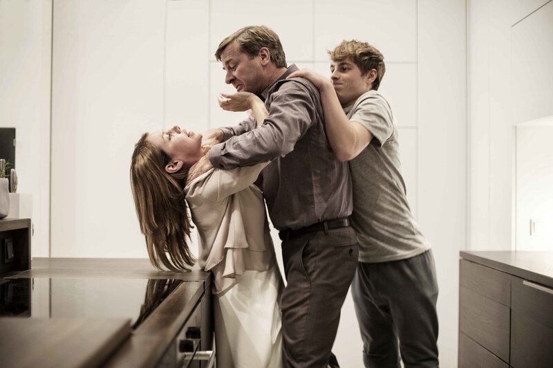 Als Leonie (Felicitas Woll, l.) vor acht Jahren Alexander (Marcus Mittermeier, M.) kennengelernt hat, da war dieser zärtlich, liebevoll, aufmerksam und ein großartiger Ersatzvater für ihren 14-jährigen Sohn Jonas (Matti Schmidt-Schaller, r.). Doch seit einigen Jahren tyrannisiert sie dieser mit Gewalt, Isolation und Gängelung ...