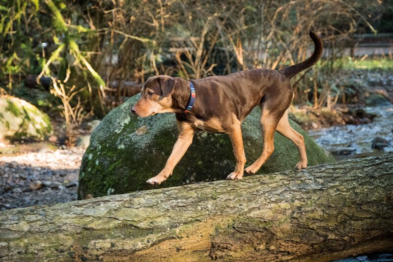 Zwei Winter verbringt Bella in der Wildnis. Hier überlegt sie, ob sie ihrem Ziehkind, einer Puma-Katze, über einen Baumstamm über einen vereisten Fluss folgen soll.Bild: © ORF/Sony Pictures/James Dittiger