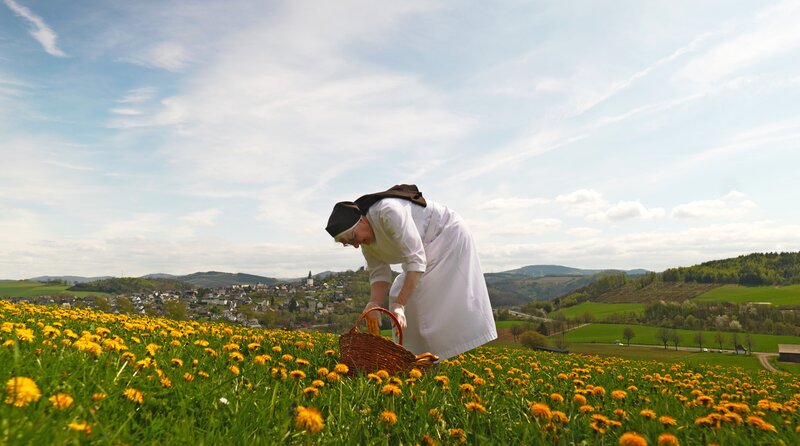 Schwester Irmgardis vom Bergkloster Bestwig sammelt Blumen für Hustensaft.Bild: © WDR/Ehrenfilm/J. Haaßengier