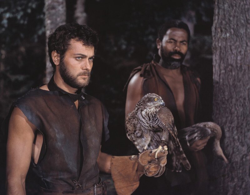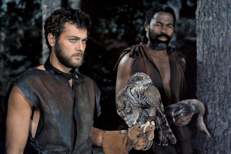 Sein Falke dient Eric (Tony Curtis, li.) nicht nur beim Jagen mit seinem Freund Sandpfeifer (Edric Connor, re.), sondern auch zur Verteidigung.Bild: © ZDF / Metro-Goldwyn-Mayer Studios Inc.