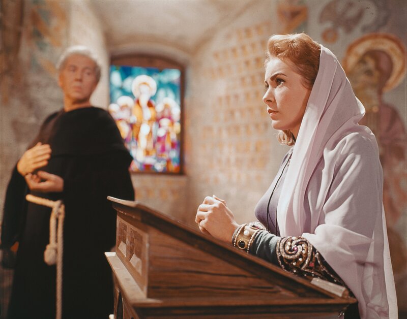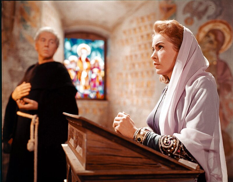 Prinzessin Morgana (Janet Leigh) hofft auf göttlichen Beistand, auch durch Vater Godwin (Alexander Knox).Bild: © ZDF / Metro-Goldwyn-Mayer Studios Inc.