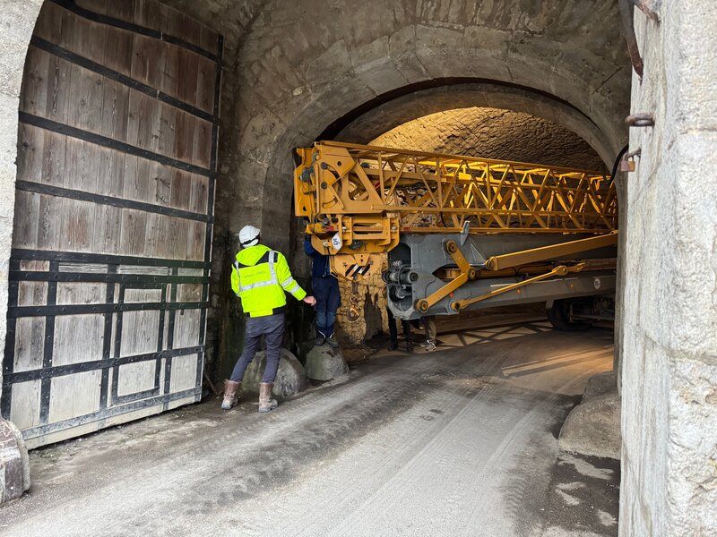 Engstelle für einen Kran in der Kurve des Tordurchgangs zur Festung.Bild: © BR/Alisa Wienand