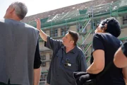 Umgeben von Mitarbeitern: Sebastian Baumeister (Mitte)ist der Bauleiter auf der Festung Marienberg.Bild: © Ansgar Nöth / BR