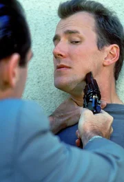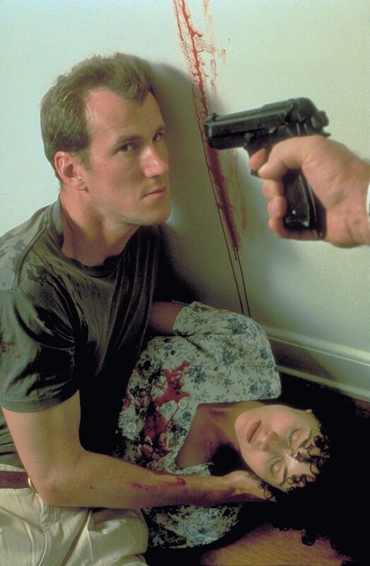 Um ihren Forderungen Nachdruck zu verleihen, erschießen die Verbrecher Sams (Frederick Deane, l.) Verlobte Cece (Delauné Michele, r.). Alles deutet auf ihn als Täter ...Bild: © Compact Media Entertainment, Inc.
