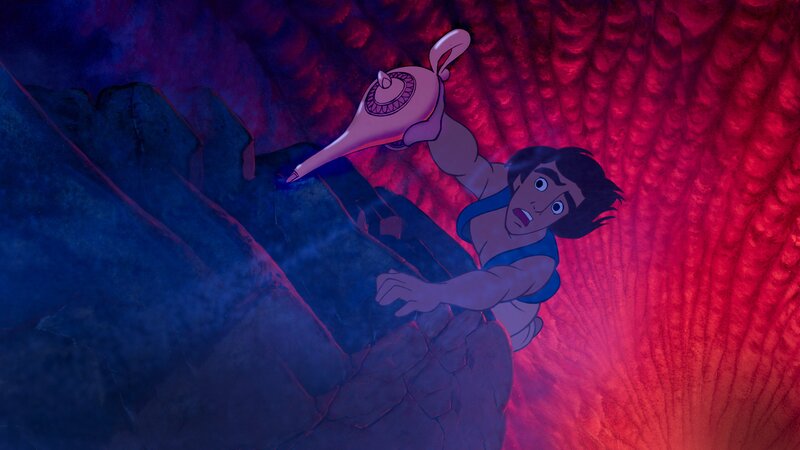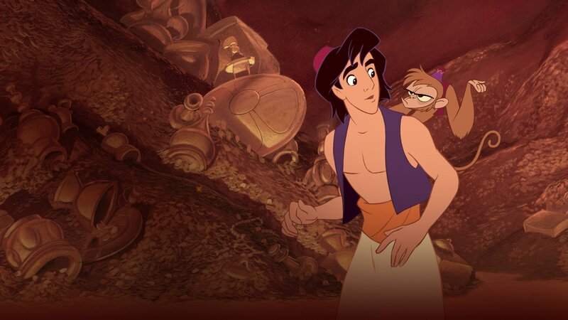 Der Sultan des arabischen Königsreichs Agrabah ist verzweifelt. Alle potenziellen Bewerber, die um die Hand seiner Tochter anhalten, lehnt diese ab. Doch laut Gesetz muss sie einen Prinzen ehelichen. Um ihr Glück selber zu finden, schleicht sich Prinzessin Jasmin aus dem Palast und begegnet auf dem Markt Aladdin, der sich sofort in die schöne Unbekannte verliebt. Die beiden verbringen einige Stunden gemeinsam. Doch bevor sie sich noch näher kennenlernen können, wird Aladdin vom Großwesir Dschafar verschleppt. Aladdin soll ihm helfen an den Schatz in der Wüste zu kommen. Als Belohnung will er ihn daraufhin unterstützen, das Herz der Prinzessin zu erobern. An der Höhle angekommen, soll Aladdin die goldene Lampe finden. Alle anderen Schätze darf er nicht berühren. Abu, Aladdins kleiner Affe und Weggefährte, hört jedoch nicht auf die Anweisungen und entdeckt neben einem fliegenden Teppich noch weitere Kostbarkeiten. Da er sie aus Neugier anfasst, entzündet sich ein böser Fluch und die Höhle stürzt ein. Aladdin kann sich mit Abu dank eines fliegenden Teppichs zum Ausgang retten und übergibt dort die Lampe an Dschafar. Doch dieser zeigt Aladdin nun sein wahres Gesicht und stößt ihn zurück in die Höhle. Abu lässt sich jedoch nicht so leicht abwimmeln und stibitzt dem Großwesir die Lampe, bevor er Aladdin zur Hilfe kommt. Die Lampe entpuppt sich schließlich als magisch: Als Aladdin sie säubert, erscheint Geist Dschinni und Aladdin darf sich drei Dinge wünschen. Ihm wird bewusst, dass er mit Dschinnis Hilfe zu einem Prinzen werden und somit seiner Prinzessin näher kommen kann. Und tatsächlich, als Aladdin als Prinz beim Sultan vorspricht und auch Jasmin von ihm angetan ist, scheint sich alles zum Guten zu wenden. Doch Dschafar gibt nicht so leicht auf ...