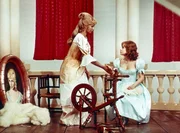 Anlässlich der Geburt ihrer Tochter geben der König und seine Gemahlin ein großes Fest. Geladen wurden aber nur zwölf Feen, die dem Kind alle guten Eigenschaften in die Wiege legen. Da der König den Fleiß missachtet, hat er die dreizehnte Fee, die des Fleißes, nicht eingeladen. Dennoch gelangt diese ins Schloss und wünscht Dornröschen den Tod. Die zwölfte Fee kann diesen Wunsch nur abmildern. Sie lässt Dornröschen in einen 100-jährigen Schlaf fallen, wenn sie sich an ihrem fünfzehnten Geburtstag an einer Spindel sticht. Der König verbannt alle Spindeln aus dem Land, womit er die arbeitenden Menschen in große Not stürzt. Doch eine Spindel wird vergessen. Und so erfüllt sich der Fluch schließlich und das gesamte Schloss fällt in einen tiefen Schlaf. Als ein junger Prinz angeritten kommt, um Dornröschen zu wecken, stellt die dreizehnte Fee ihn auf die Probe. Da er sich als klug, warmherzig und gerecht erweist, erwachen mit Dornröschen auch alle anderen im Schloss.