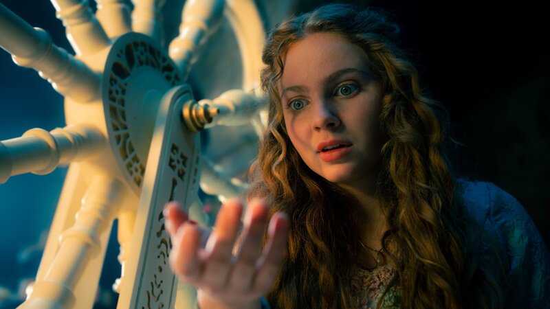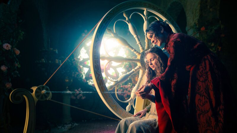 Prinzessin Rosabella (Alix Heyblom, l.) entdeckt an ihrem 16. Geburtstag ein großes Spinnrad im Schloss. Dabei hatten ihre Eltern alle Spindeln im Land entfernen lassen - aus Angst, Rosabella könnte sich daran stechen. Denn durch einen Spindelstich würde sich der Fluch erfüllen, mit dem Fee Rubia (Bella Dayne, r.) die Prinzessin kurz nach ihrer Geburt belegt hat.Bild: © tim rosenbohm / ZDF