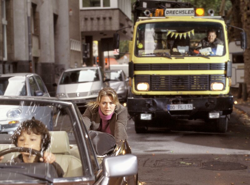 Schon wieder was zum Abschleppen. Ein offenbar defektes Auto - was sonst?! Beim verschlossenen Drechsler (Dietmar Bär, im Hintergrund rechts) ist kaum davon auszugehen, dass er bei dieser ersten Begegnung mit Iben Ameland (Sofie Lassen-Kahlke) und ihrem Sohn Milan (Justin Doerré) in den beiden mehr sieht als ein Verkehrshindernis.Bild: © WDR/Michael Böhme