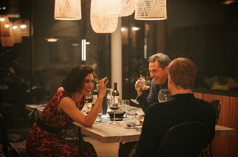 v.l.n.re.: Jessica (Indira Varma), Tom (Alan Tudyk) und Richard (Rufus Sewell) erinnern sich an alte Zeiten.Bild: © WDR/Pandastorm