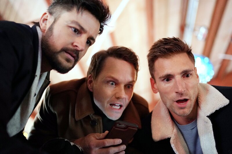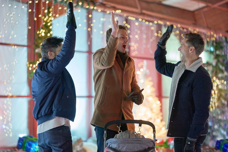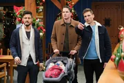 Die Brüder Stephan (Paul Campbell, re.), Taylor (Tyler Hynes, un.) und Luke (Andrew Walker) müssen sich unverhofft um ein Baby kümmern.Bild: © Bettina Strauss / Hallmark Media