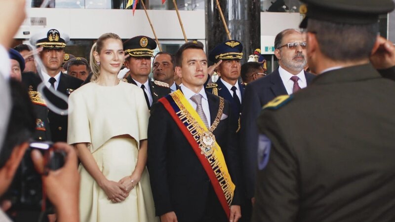 Daniel Noboa wird 2023 als jüngster Präsident in der Geschichte des Landes ins Amt gewählt. Er setzt auf ein hartes Durchgreifen der Armee.Bild: © ZDF und Ligne de Front