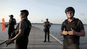 Der Gouverneur Javier Buitrón (2.v.r.) begleitet eine Spezialeinheit bei einer Patrouille entlang der Flussgrenze zwischen Ecuador und Kolumbien.Bild: © Duskwater Films