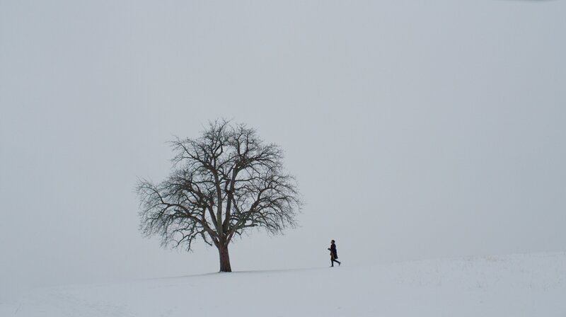 Reisender, Visionär, ewig Suchender, gern in Selbstgespräche vertieft: Albrecht Dürer, gespielt von Wanja Mues, in verschneiter WinterlandschaftBild: © NDR/ARTE/B | 14 FILM/Jonas Römmig