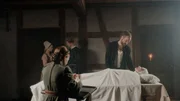 Dürer und seine Frau Agnes trauern um seine geliebte Mutter Barbara Dürer. In den Rollen: Wanja Mues als Albrecht Dürer, Hannah Herzsprung als Agnes Dürer, Anika Mauer als Mutter Barbara Dürer. Im Hintergrund: Nellie Thalbach und Felix Kammerer als Magd Susanna und Geselle Hans Baldung Grien.Bild: © NDR/ARTE/B | 14 FILM/Jonas Römmig