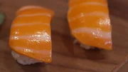 Im Bioreaktor gewachsener Lachs der Firma Wildtype.Bild: © ZDF und Florian Kössl