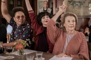 Sie stimmen alle für das Aufheben des Übernachtungsverbots im Familiengarten: (v.li.) Marc Sway als Paolo Cesar, Steffi Friis als Nelly, Heidi Diggelmann als Rose-Marie.Bild: © SRF / Miriam Künzli