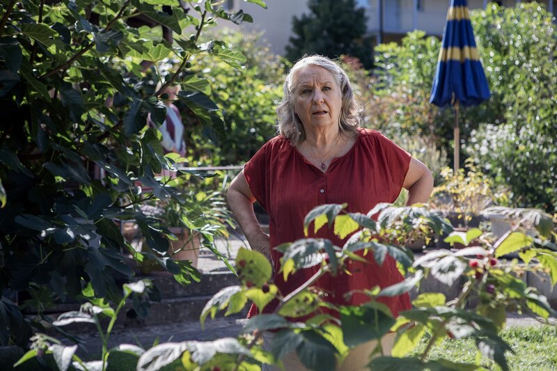 Kann es nicht fassen, dass Rose-Marie in den Schrebergarten zieht: Suly Röthlisberger als Tante Hanni.Bild: © SRF / Miriam Künzli