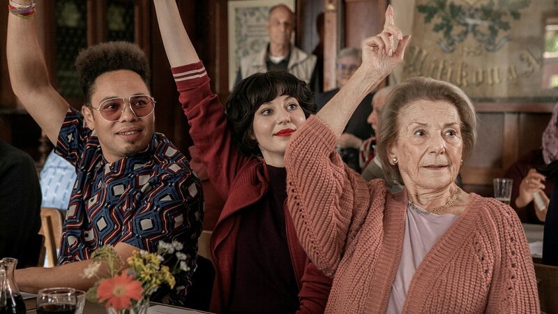Paolo Cesar (Marc Sway), Nelly (Steffi Friis) und Rose-Marie (Heidi Diggelmann)Bild: © ZDF und SRF/Miriam Künzli