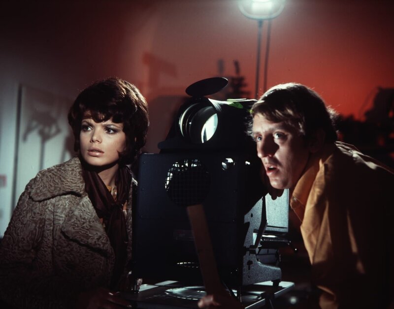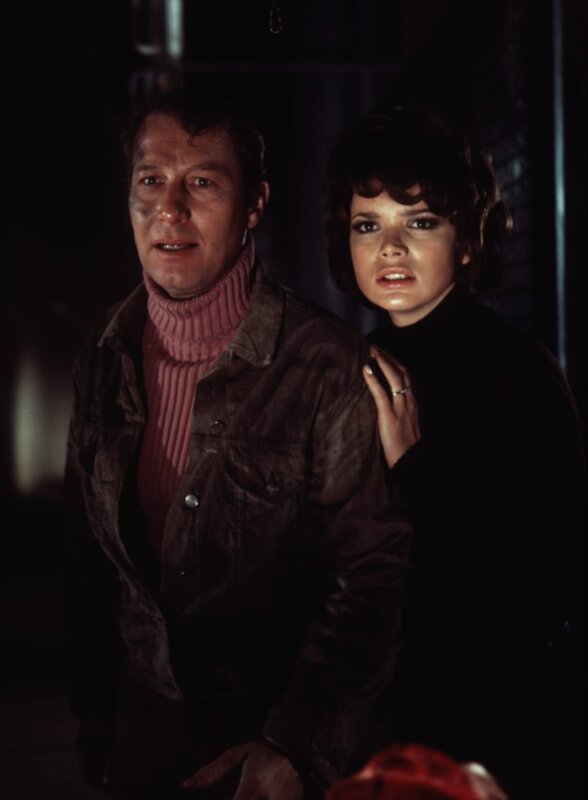 Kitty (Ingrid Steeger, li.) und der Pressefotograf David Armstrong (Vadim Glowna) werden Zeugen eines vermeintlichen Mordes.Bild: © Tobis Film