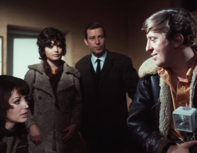 L-R: Susan Atkins (Petra Schürmann), Danny Fergusson (Uschi Glas), Inspector Craig (Hansjörg Felmy), David Armstrong (Vadim Glowna)Bild: © Tobis Film