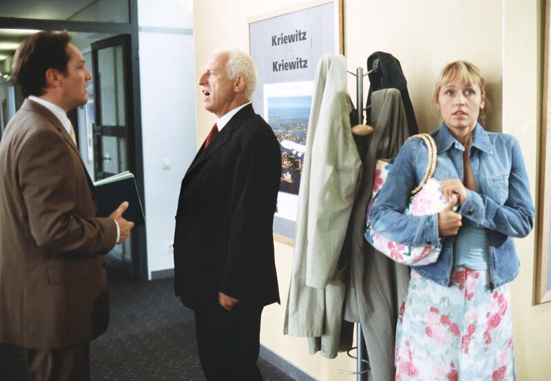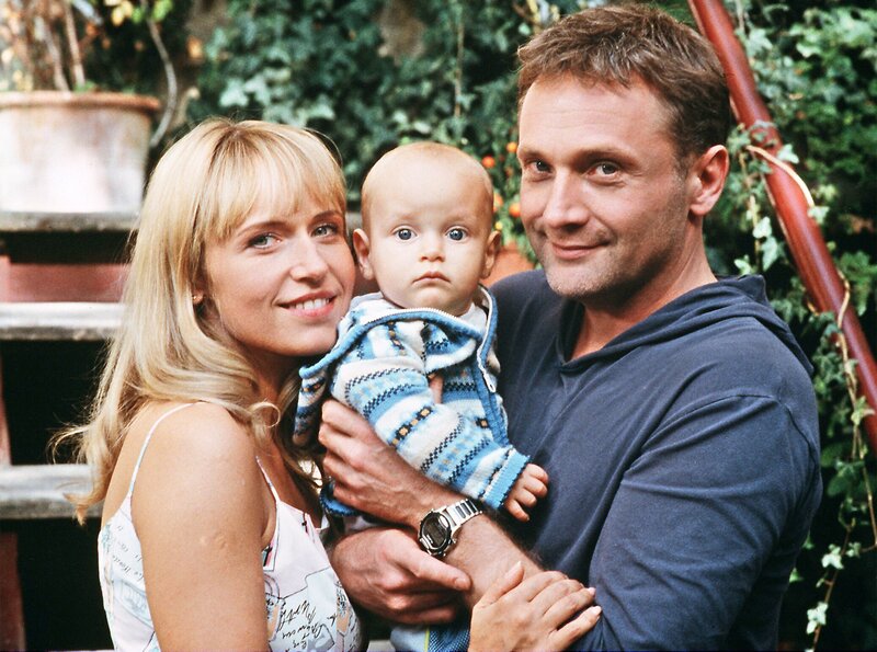 Dr. Vera Becker (Katharina Müller-Elmau, li.) hat ihre Sympathien für Leo (Bernhard Schir) entdeckt, der ihr den fürsorglichen Vater des kleinen Felix (Maximilian und Matthias Bäumler) vorgespielt hat. Das Auftauchen von Felix' Mutter Antonia (Anica Dobra) erzeugt einige Irritationen.