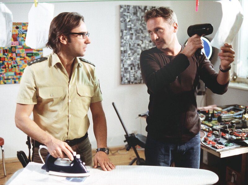 Der Polizist Leo (Bernhard Schir) bietet seiner Nachbarin Antonia (Anica Dobra) an, auf ihren kleinen Sohn Felix (Maximilian und Matthias Bäumler) aufzupassen.