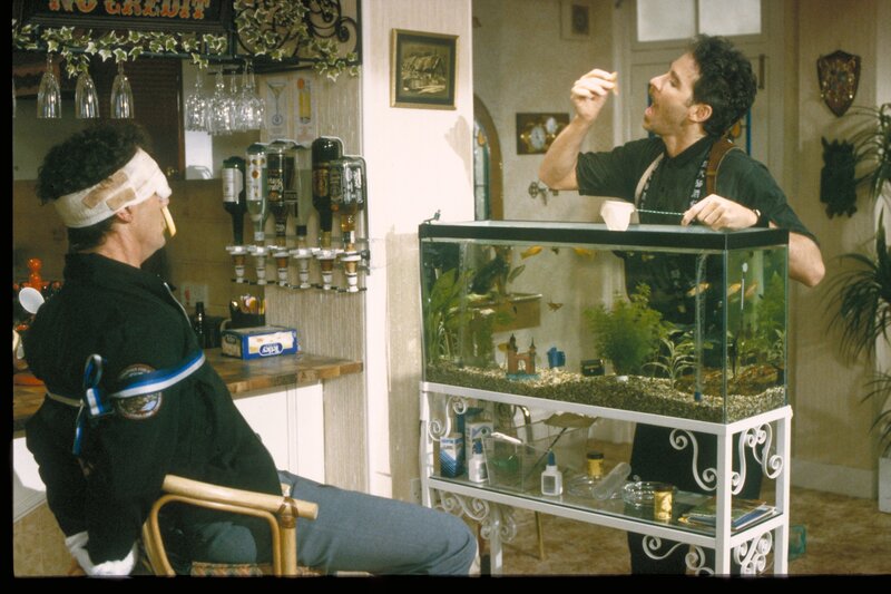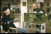 Otto (Kevin Kline, r.) scheut nicht davor zurück, Kens (Michael Palin) geliebte Fische zu essen, um ihm das Versteck der Diamanten zu entlocken.Bild: © Kabel Eins Classics