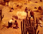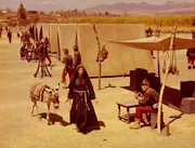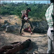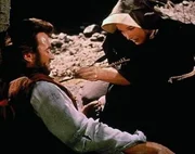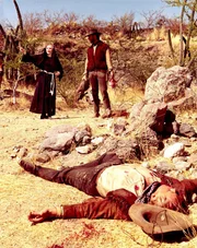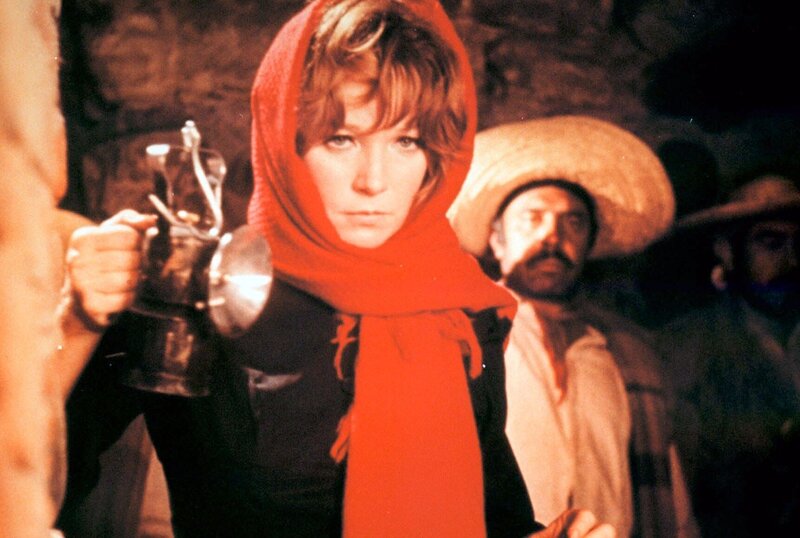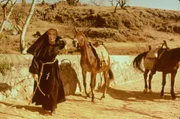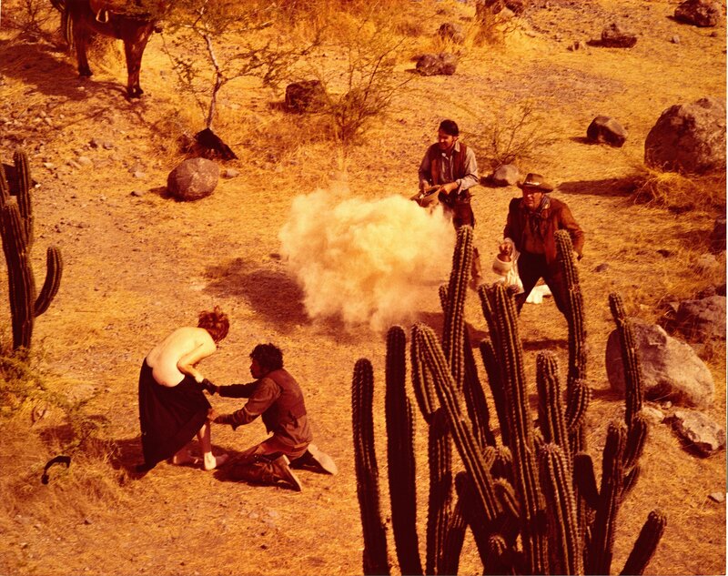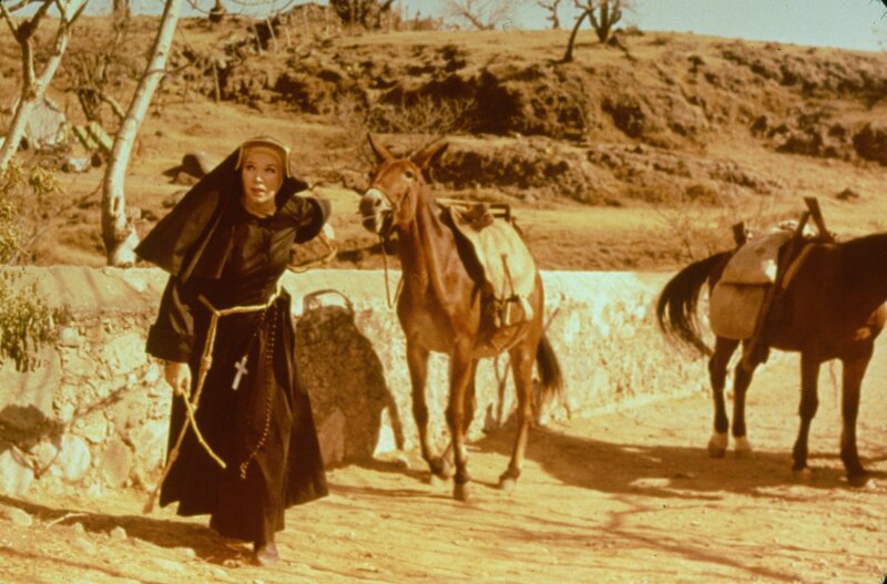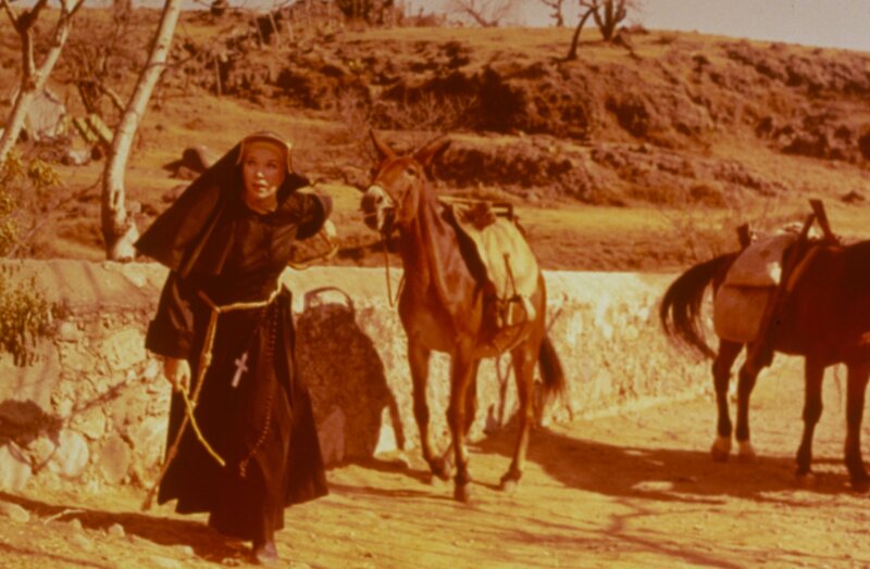 Die als Nonne verkleidete Prostituierte Sara (Shirley MacLaine, l.) wird von drei Männern in der Wüste Mexicos bedrängt. Kann sie ihnen entkommen?; Die als Nonne verkleidete Prostituierte Sara (Shirley MacLaine, l.) wird von drei Männern in der Wüste Mexicos bedrängt. Kann sie ihnen entkommen?